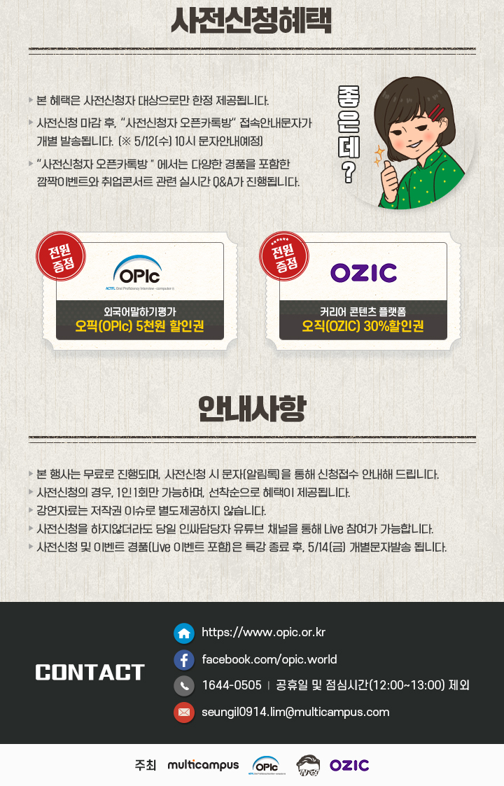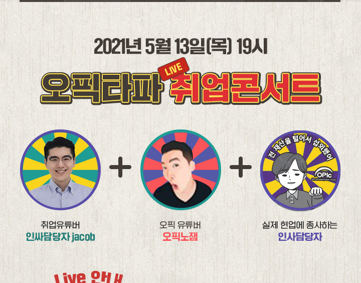 | [상반기취업콘서트] 오픽취업콘서트 참여자 대상 쿠폰안내 (0) | 2021.03.21 |