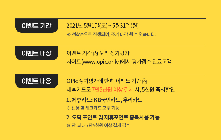 | [OPIc X 스마일페이] 오픽보고 최대 8천원 SAVE하는 방법 (0) | 2021.03.11 |
